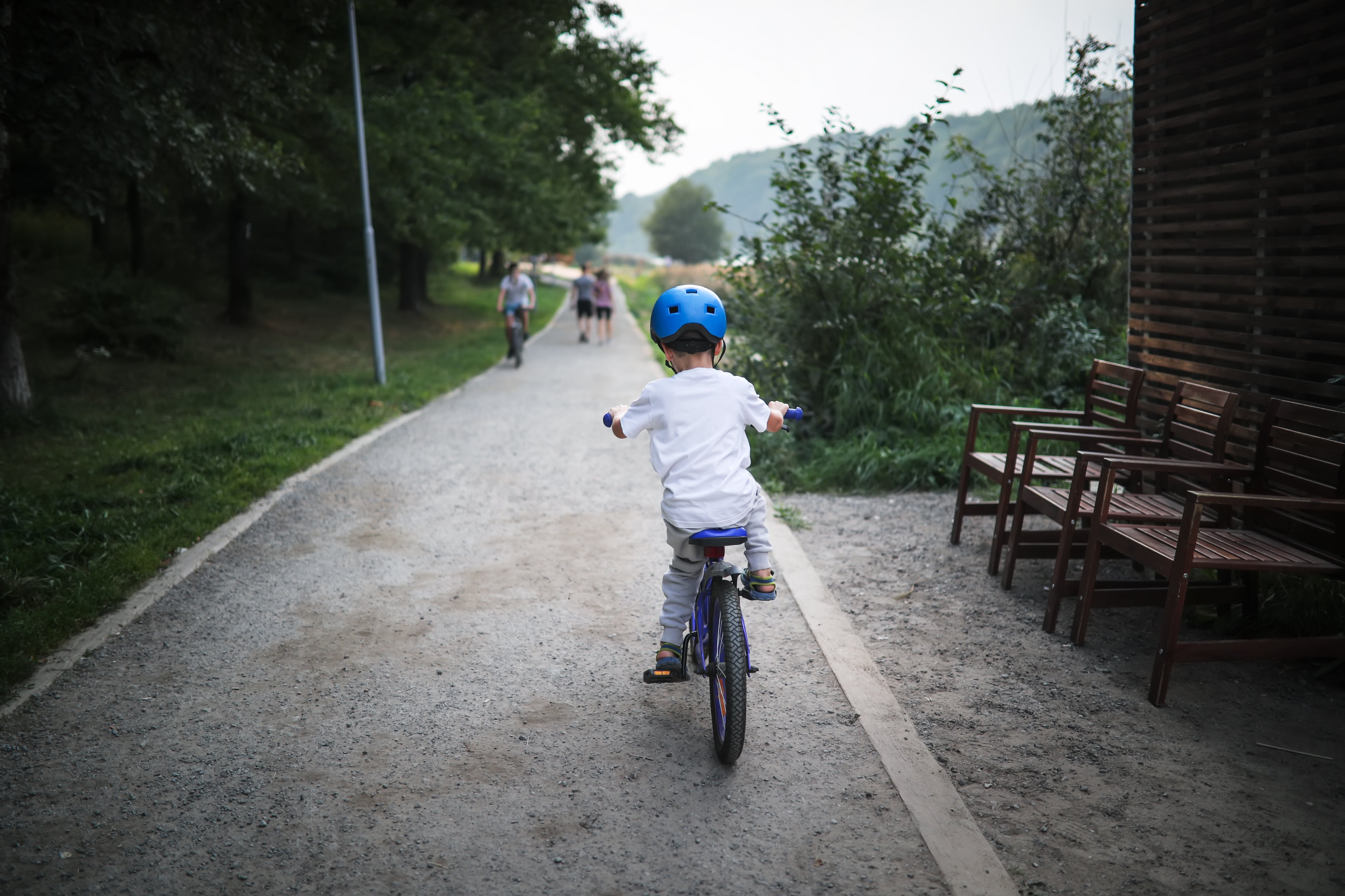 Das Kind war mit seinem Fahrrad vom Weg abgekommen.