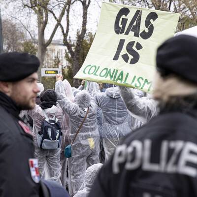 "In diesem Hotel trifft sich gerade die europäische Gasindustrie mit Investoren, wie beispielsweise BlackRock, und der europäischen Politik, um dort über die Zukunft unseres Energiesystems zu verhandeln", hatte Verena Gradinger, Sprecherin des Bündnisses "BlockGas", den Grund für die Proteste benannt. Anselm Schindler, ebenfalls von "BlockGas", sprach von "Profiteuren des Krieges und der Inflation", die über die nächsten Jahrzehnte die Gasinfrastruktur weiter ausbauen würden. Auch an den Küsten Afrikas und in Lateinamerikas werde agiert, Schindler ortete "koloniale Kontinuitäten", denn die Energiearmut bliebe der jeweiligen Bevölkerung erhalten, die Ressourcen seien schließlich für "uns" in Europa.