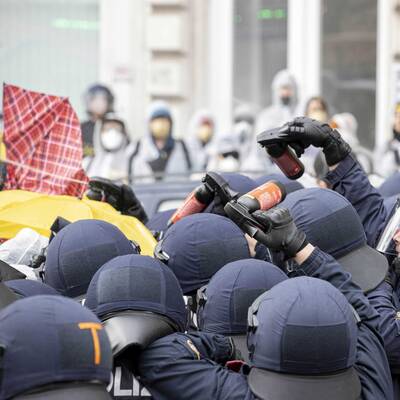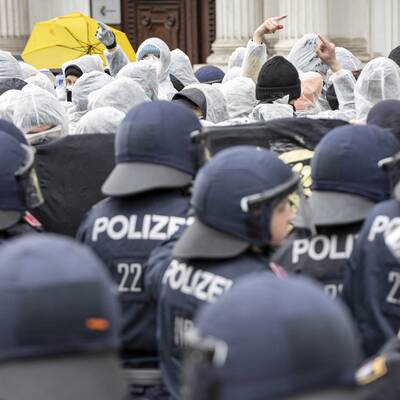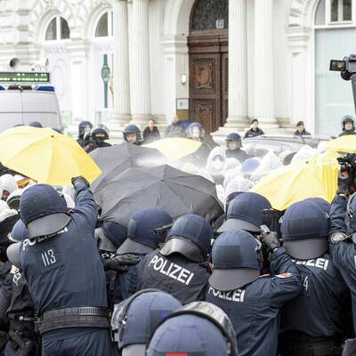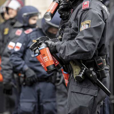 Die Polizei habe Pfefferspray eingesetzt, um "ein Durchbrechen der Sperrkette zu verhindern", heißt es in einer Aussendung. Die gewaltbereite Menge wollte, das behördliche Platzverbot offensichtlich erstürmen. "Auch war erkennbar, dass sie aus der Anonymität der Masse heraus gewillt waren, schwere gemeinschaftliche Gewalt auszuüben", so die Polizei.