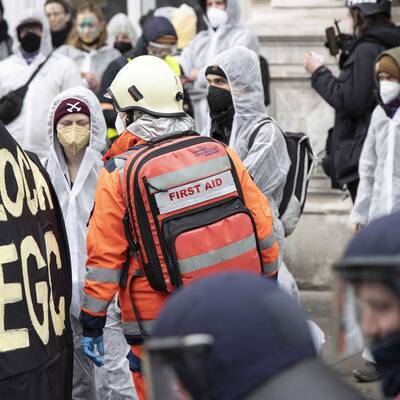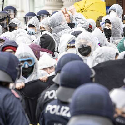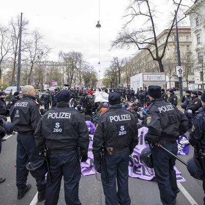 Die Polizei berichtet von zwei nicht angemeldeten Kundgebungen, eine am Parkring, die friedlich ablief und deren Teilnehmer bis zum Karlsplatz marschierte, wo die Schlusskundgebung abgehalten wurde. Die Demonstranten der zweiten Demo in der Johannesgasse hätten laut Polizei von Beginn an "ein gewaltbereites Vorgehen gegen die Einsatzkräfte" gezeigt. Zwei Polizisten seien dadurch verletzt worden. "Die Personen haben sich teilweise im Vorhinein mit Steinen ausgerüstet, versucht die Sperrkette der Polizei gewaltsam zu durchbrechen und haben unter anderem bei der Anhaltung Widerstände gesetzt", berichten die Beamten.