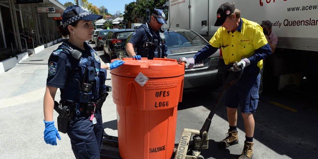 Polizei bringt Leichenteile aus der Wohnung in Brisbane.