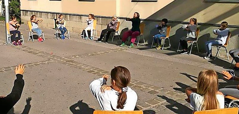 Unterrichtet werde alles. Wie laut Corona-Handbuch gefordert Singen (s. großes Foto) – aber auch Deutsch und Mathe. Und obwohl es im Herbst kühler werden wird, will man dabei bleiben. „Wenn es nicht regnet, soll draußen unterrichtet werden – wir haben im Elternbrief schon mitgeteilt, dass die Kinder warme Kleidung brauchen werden.“ Zudem soll auch in benachbarten Turnsälen unterrichtet werden – Abstand ist in Zeiten wie diesen eben alles. (gü)