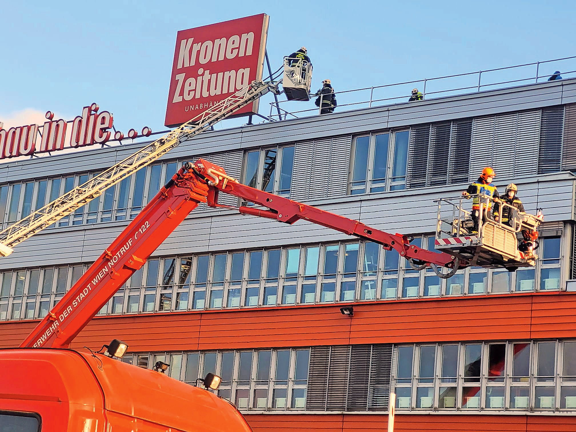 Die Feuerwehr löste wegen des großen Gebäudes Alarmstufe 2 aus, war blitzartig vor Ort, weil der Portier des Hauses goldrichtig reagiert hatte. Die Krone selbst berichtete: „Ein Feueralarm riss die Mitarbeiter von den Arbeitsplätzen (sic!). Dichter schwarzer Rauch drang durch die Belüftungsanlage aus dem Dach.“ Laut Krone.at musste das Haus evakuiert werden.