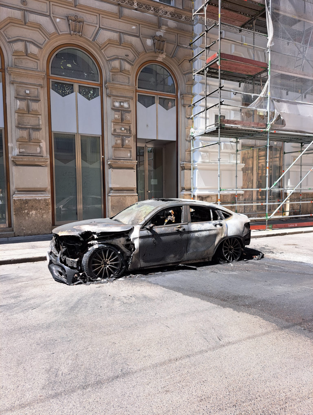 - Um 03:45 Uhr ging in der Heßgasse unweit dem Schottentor und der Uni Wien ein geparkter Mercedes GLC 220 D in Flammen auf und brannte vollständig aus. Der Neuwert eins solchen SUV-Coupés: ab 70.000 Euro.