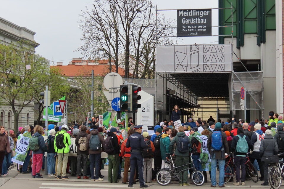 Zum Lückenschluss des Straßenprojekts "S1 Wiener Außenring Schnellstraße" haben diese Woche die ersten Umsetzungen begonnen - was prompt erste Proteste ausgelöst hat. Donnerstagvormittag versammelten sich nach eigenen Angaben rund 150 Demonstranten vor dem Verkehrsministerium, unter anderem von Lobau Bleibt! und Fridays For Future. Konkret geht es dabei um sogenannte bauvorbereitende Maßnahmen im Freilandabschnitt von Groß-Enzersdorf bis Knoten Süßenbrunn, dazu zählen neben dem Aufstellen von Baucontainern auch sechs Zählstellen. Der Trassenbau selbst startet erst 2027.