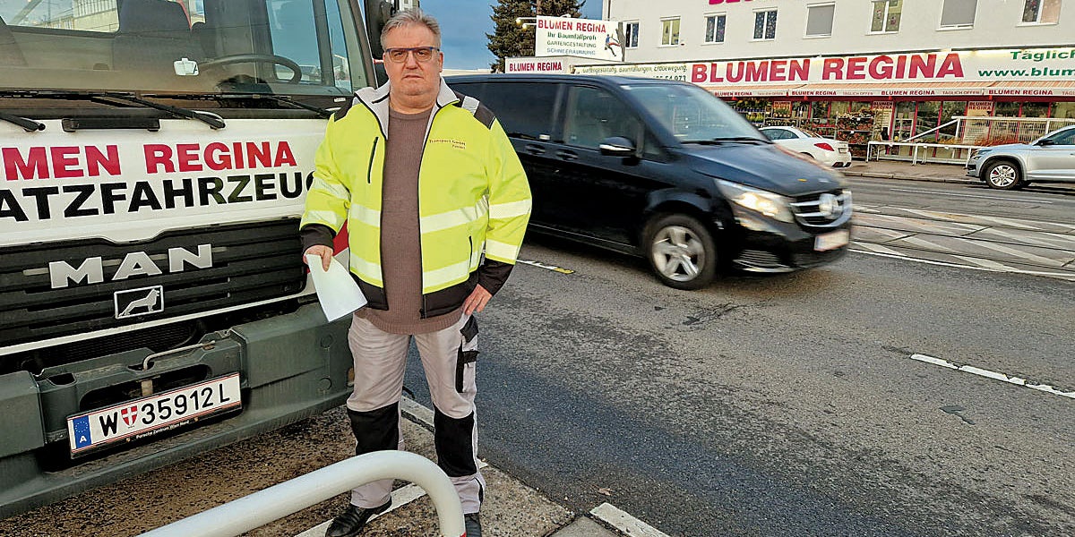 Floridsdorf. Weil der Floridsdorfer Gärtner Gerhard Petrides einen seiner Lkws in der Prager Straße abgestellt hatte, schrieb ihm prompt ein weibliches Parkraumüberwachungsorgan ein Strafmandat.