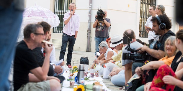 Zunächst war von einem Kuss-Flashmob die Rede, allerdings wurde es schlussendlich zu einem Frühstück am Boden.