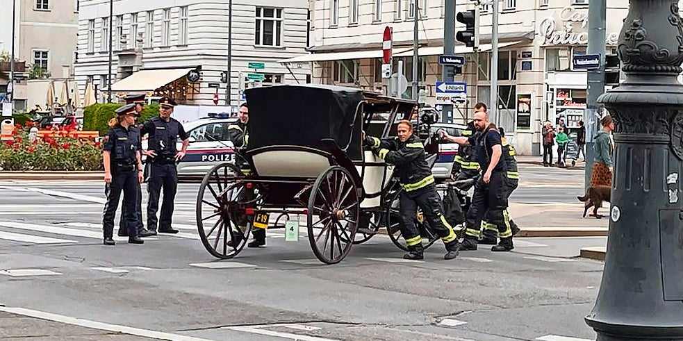 Danach wurden die leicht verletzten Tiere von einem Transporter abgeholt und das Fiakergespann von der Feuerwehr abtransportiert.