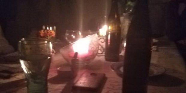 Eine Hochspannungsleitung war ausgefallen und sorgte etwa eineinhalb Stunden lang für Dunkelheit in den Haushalten der betroffenen Wohn-Gebiete. Was aber viel Wiener nicht davon abhält sich einen gemütlichen Ostersonntagabend zu machen, wie dieses Bild bei Kerze und Getränke zeigt: