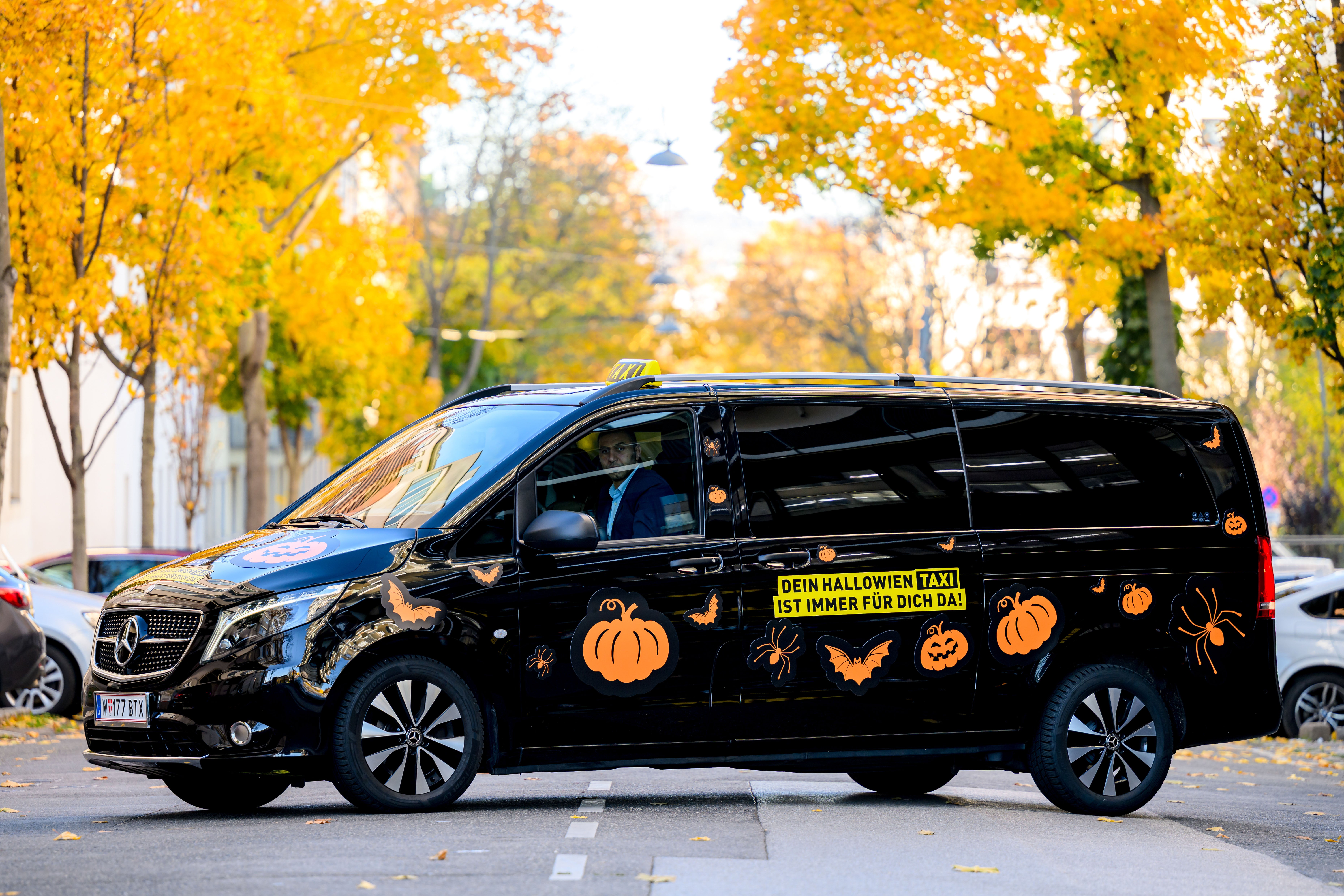 Zu Halloween düst am Freitag ein ganz besonderes Taxi durch Wien. Das "HalloWien Taxi" der Wiener Taxi-Innung ist festlich geschmückt und von 18 Uhr bis Mitternacht in der ganzen Stadt unterwegs. Wer das auffällige Fahrzeug entdeckt, darf kostenlos zusteigen und sich direkt zur Halloween-Party seiner Wahl bringen lassen.