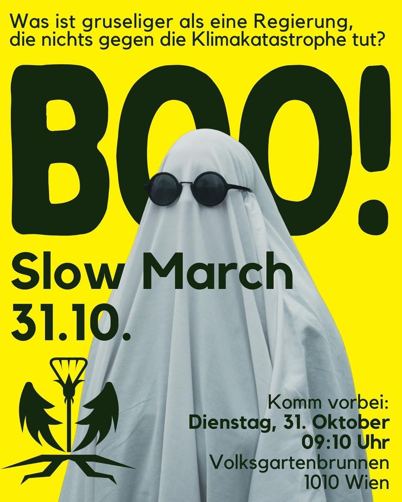 Wien. „Was ist grusliger als eine Regierung, die nichts gegen die Klimakatastrophe tut?“, fragt die Letzte Generation. Die Antwort: Sie selbst. Denn sie rufen morgen ab 9.10 Uhr zum berüchtigten „Slow March“, einer Langsamgeh-Demo. Treffpunkt ist der Volksgartenbrunnen.