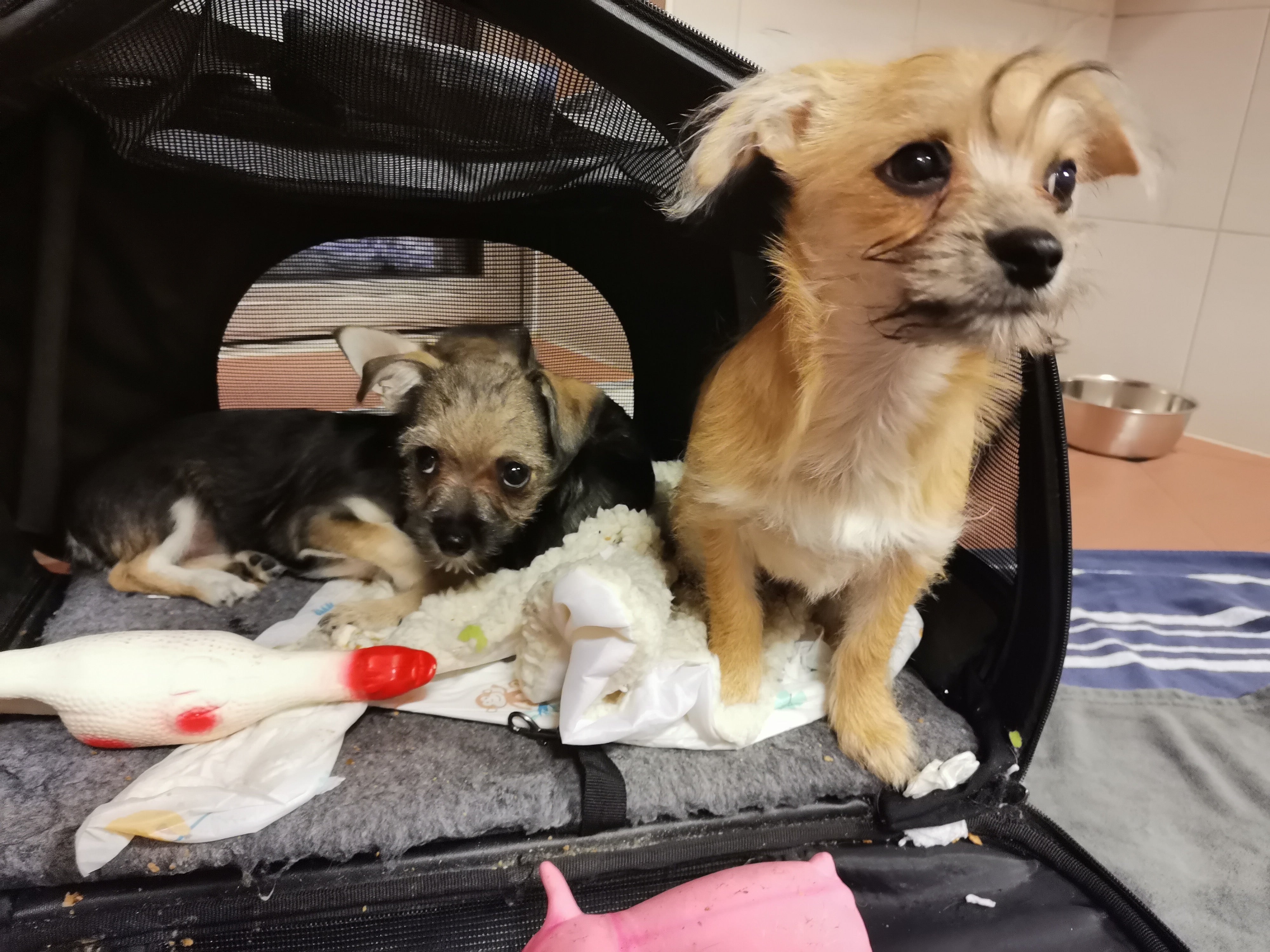 Laut "TierQuarTier" kauerten die erst wenige Wochen alten Hundebabys bei Temperaturen rund um den Gefrierpunkt frierend und ängstlich zusammen. Die Tierrettung brachte die Welpen ins Tierheim.