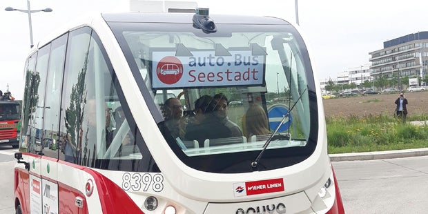 Seit heute Donnerstag rollen zwei autonome Elektrobusse durch die Seestadt Aspern in Wien.