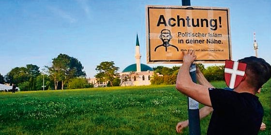 Wien. Am Mittwoch war der erste „sichtbare“ Output des Streits um die umstrittene Islam-Landkarte des Integrationsministeriums im Wiener Straßenbild zu sehen. Vor mehreren Moscheen, darunter auch vor der – bekannt radikalen – Tewhid-Moschee in der Murlingengasse, wo sich auch der spätere vierfache Terror-Mörder Kujtim F. radikalisiert hatte, tauchten irritierende Warntafeln auf: Auf braunem Untergrund stand da zu lesen: „Achtung! Politischer Islam in deiner Nähe“. Die Karikatur eines bedrohlich dreinblickenden Imams erinnert manche BetrachterInnen durchaus an den Stil des „Stürmers“ – bei aller Unvergleichbarkeit des NS-Regimes mit der heutigen Islamismus-Debatte.