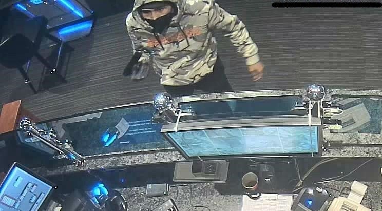 Mindestens zwei Überfälle auf Wettlokale in Wien gehen auf das Konto eines bewaffneten "Hindernisläufers" mit Corona-Maske und auffälligem Camouflage-Hoodie mit der Aufschrift einer Hip-Hop-Gruppe. 1.000 Euro Belohnung sind jetzt für Hinwiese auf ihn ausgesetzt.