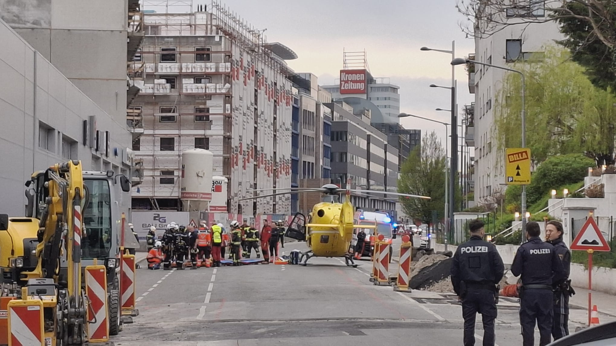 Der Mann dürfte nach Informationen von Berufsfeuerwehr und Berufsrettung in einem der oberen Stockwerke auf einer Holzverschalung gearbeitet haben und dabei mehrere Meter auf eine tiefer gelegene Plattform gefallen sein.