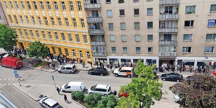 Riesenschlange vor dem Gesundheitszentrum Neunerhaus am Impf-Tag.