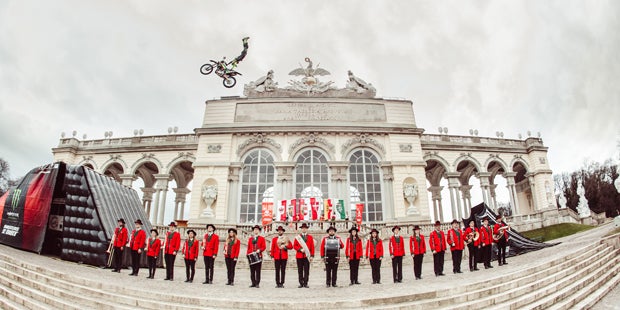 Die Aktion sollte auf die bevorstehende "Masters of Dirt"-Österreich-Tour aufmerksam machen. Freestyle-Motocross hätte es mit Sicherheit an diesem noblen Schauplatz gegenüber dem Schloss Schönbrunn noch nicht gegeben, hieß es in einer Aussendung. Die Tour beginnt am 2. März in Klagenfurt.