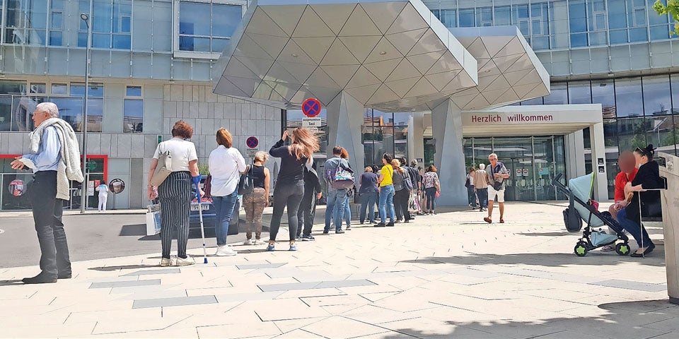 Enstprechend weit reichte die Schlange binnen kürzester Zeit zurück. Und entsprechend groß war natürlich auch der Ärger der Besucher: „Wir verstehen ja die Personalnot der Spitäler. Aber dass wir in der prallen Hitze warten müssen, ist unverständlich.“