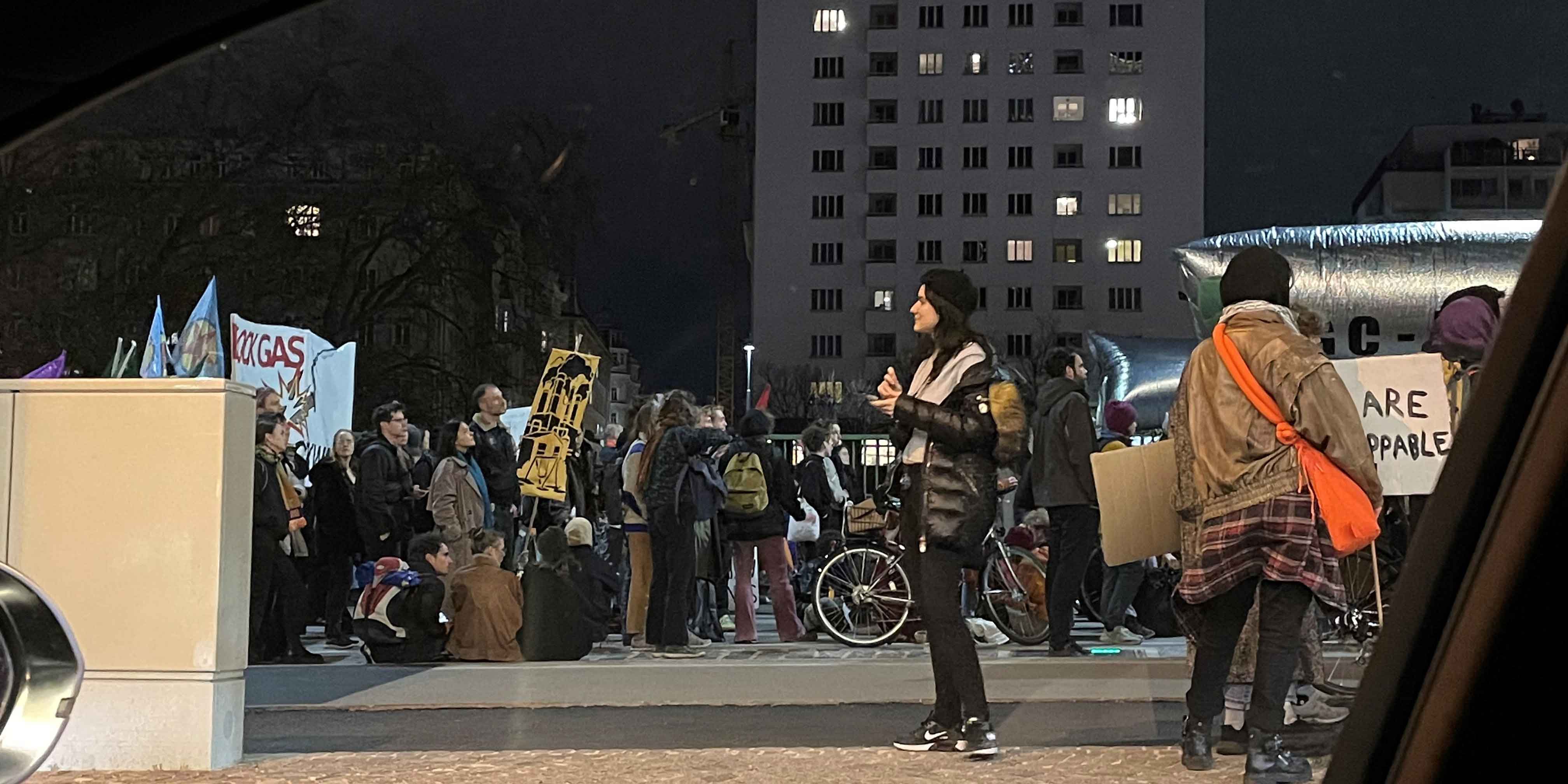 Das Bündnis "Block Gas Alliance" postete Fotos von der Klima-Demo gegen die Europäische Gaskonferenz (EGC), die noch vor dem Start wegen Sicherheitsbedenken verschoben wurde. So gab es trotz Verschiebung der Konferenz schon am Montag erste Protestaktionen. Auch die heutige Kundgebung richtete sich gegen die EGC.