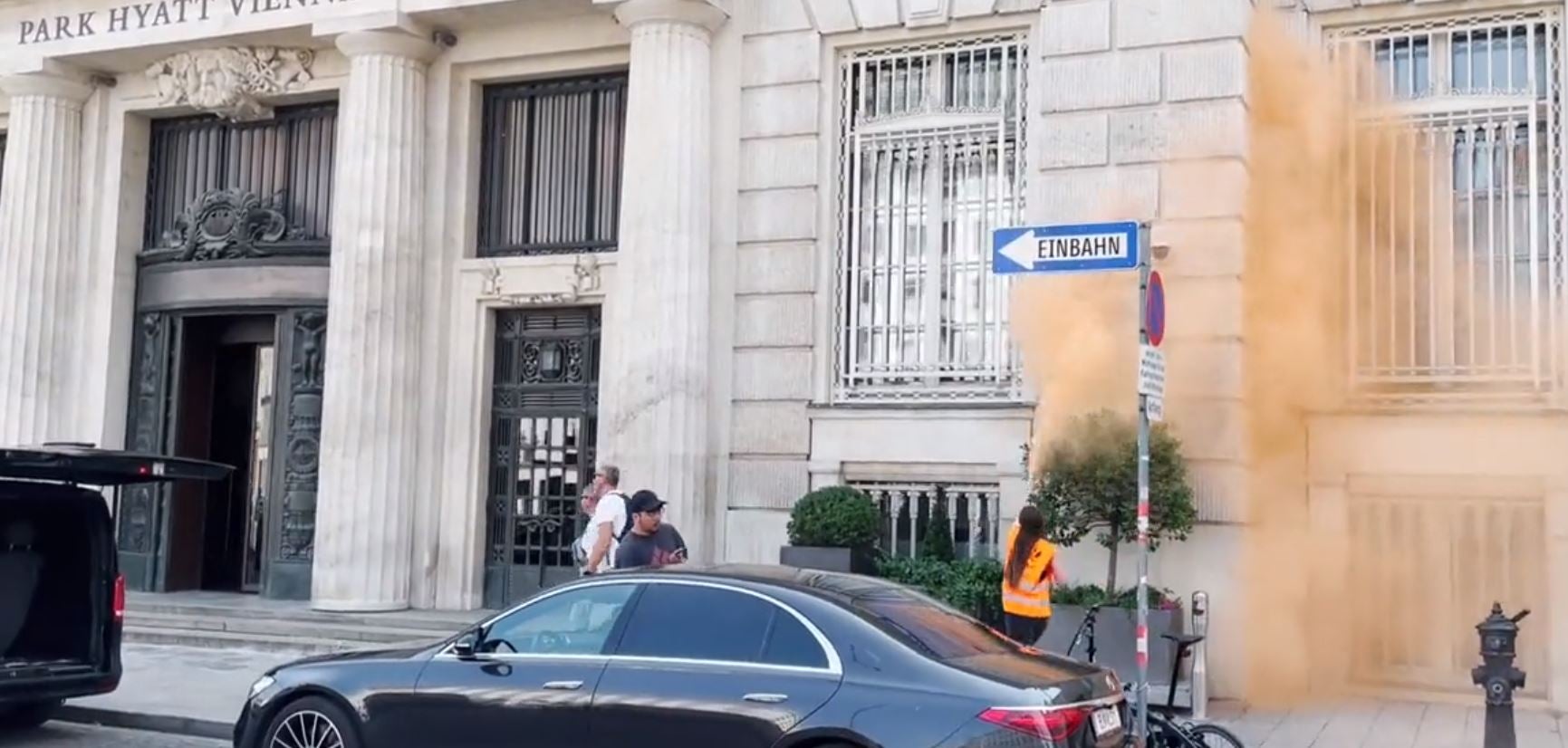 Klima-Aktivisten der ''Letzten Generation" haben das Wiener Nobelhotel ''Park Hyatt'' mit einem Farbpulver besprüht. In der Innenstadt kommt zu weiteren Protestaktionen.