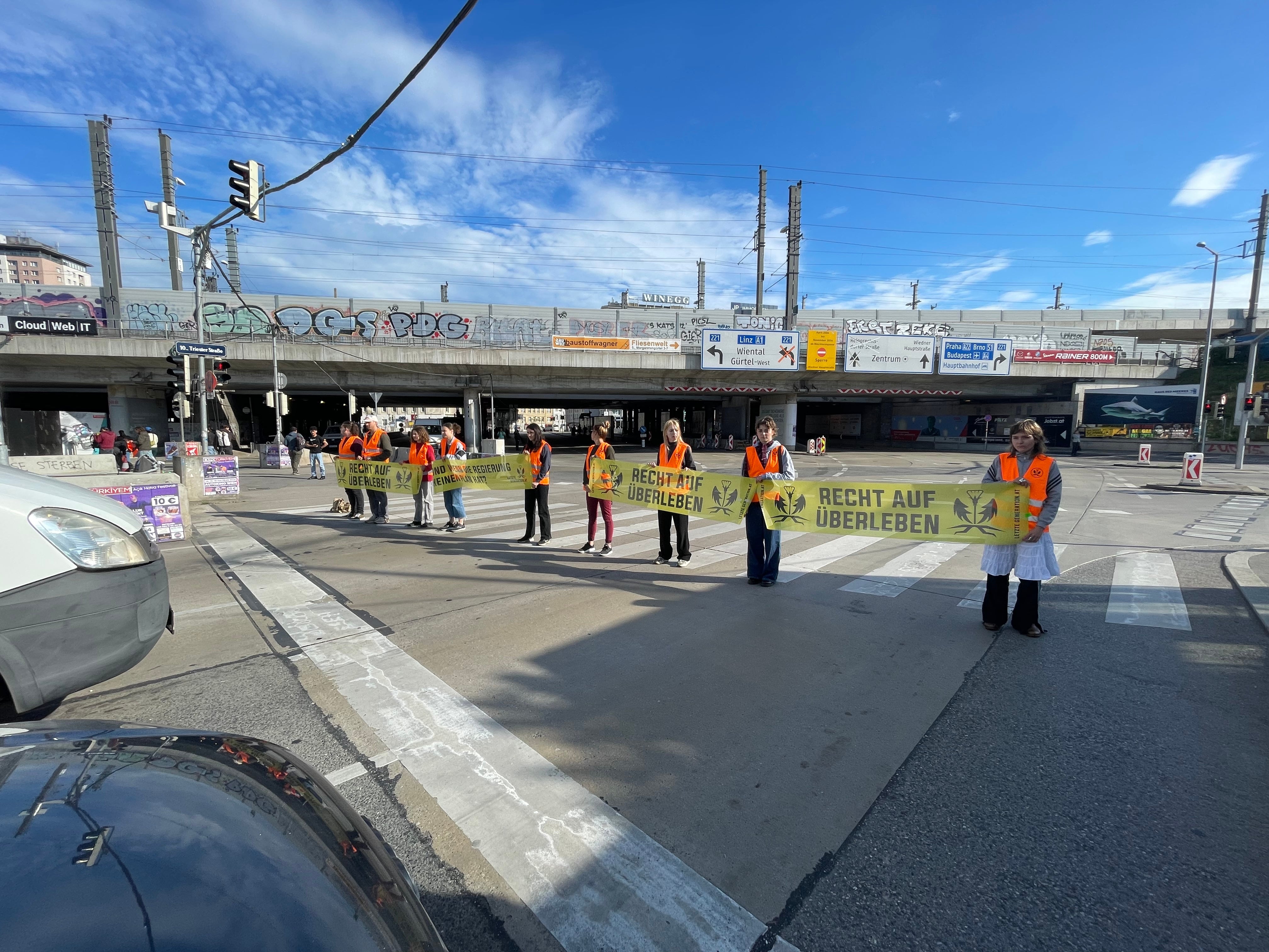 An mehreren Orten in Wien protestierten heute Aktivisten der Letzten Generation Österreich, um auf die Hungerstreikenden in Deutschland aufmerksam zu machen, die vom deutschen Bundeskanzler Ehrlichkeit in Sachen Klimakrise fordern.