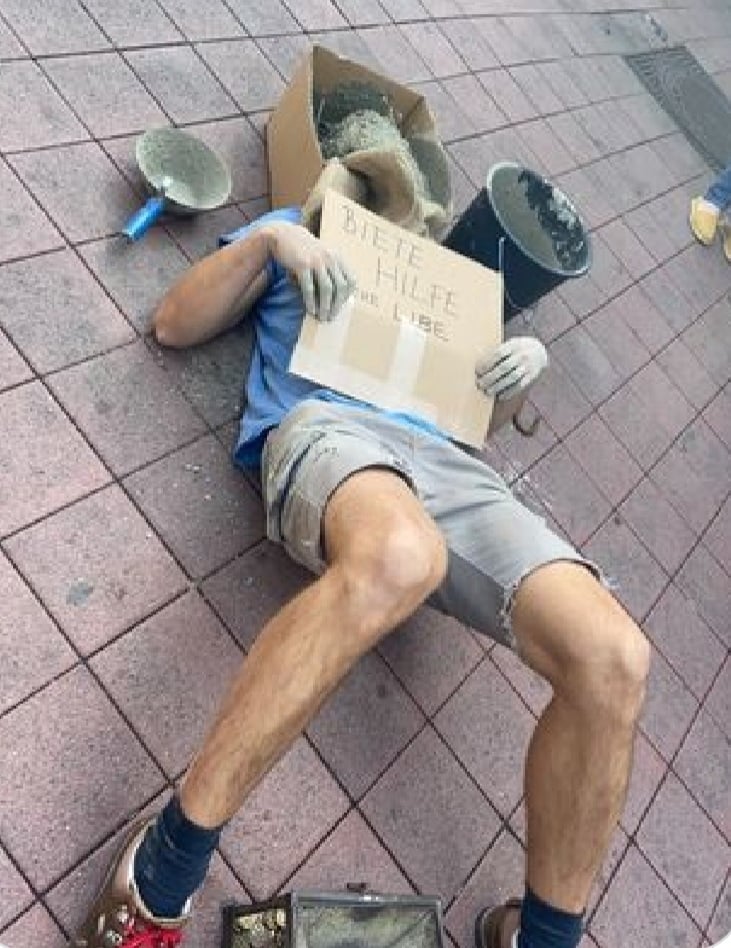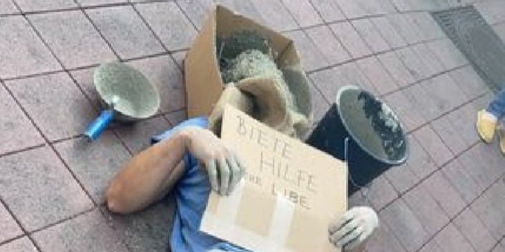 Wien. Am Samstag gegen 13.30 Uhr spielte sich am Wiener Naschmarkt eine seltsame und verstörende Aktion ab: Ein Mann übergoss vor besorgten Passanten seinen Kopf mit Beton. Zeugen riefen die Feuerwehr, in Angst der Mann könnte sich verletzten. Um den Mann entstand eine Traube von Menschen – als die Einsatzkräfte eintrafen, befanden sich zahlreiche Schaulustige rund um den am Boden sitzenden Mann. Er hatte sich aufgesetzt als der Beton getrocknet war und begann sich mit Hammer-Schlägen selbst davon zu befreien – die Feuerwehr musste nicht helfend einschreiten. Tatsächlich ist es ihm geglückt das harte Material zu lösen. Offenbar soll es sich bei den gefährlichen Vorgängen um eine "Kunstaktion" gehandelt haben. Über die Identität des Mannes ist nichts bekannt.