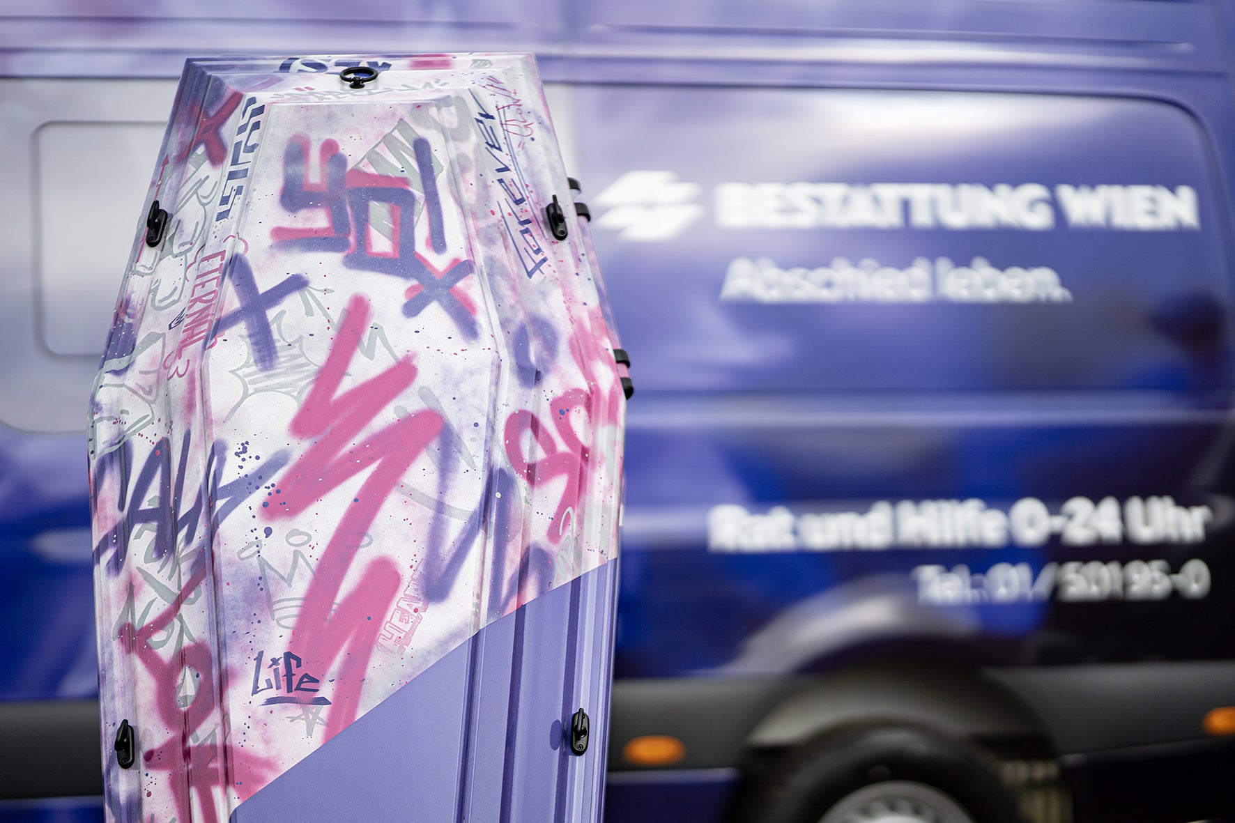 "Die Art des Abschieds wird immer individueller" – Bestattungs-Wien-Chef Jürgen Sild macht klar: Wer auch auf der letzten Reise seine Persönlichkeit zeigen will, bekommt bei ihm die Chance dazu. „Mit Projekten wie diesen Designer-Särgen schaffen wir neue Möglichkeiten" – und so kommt jetzt auch Graffiti unter die Erde!