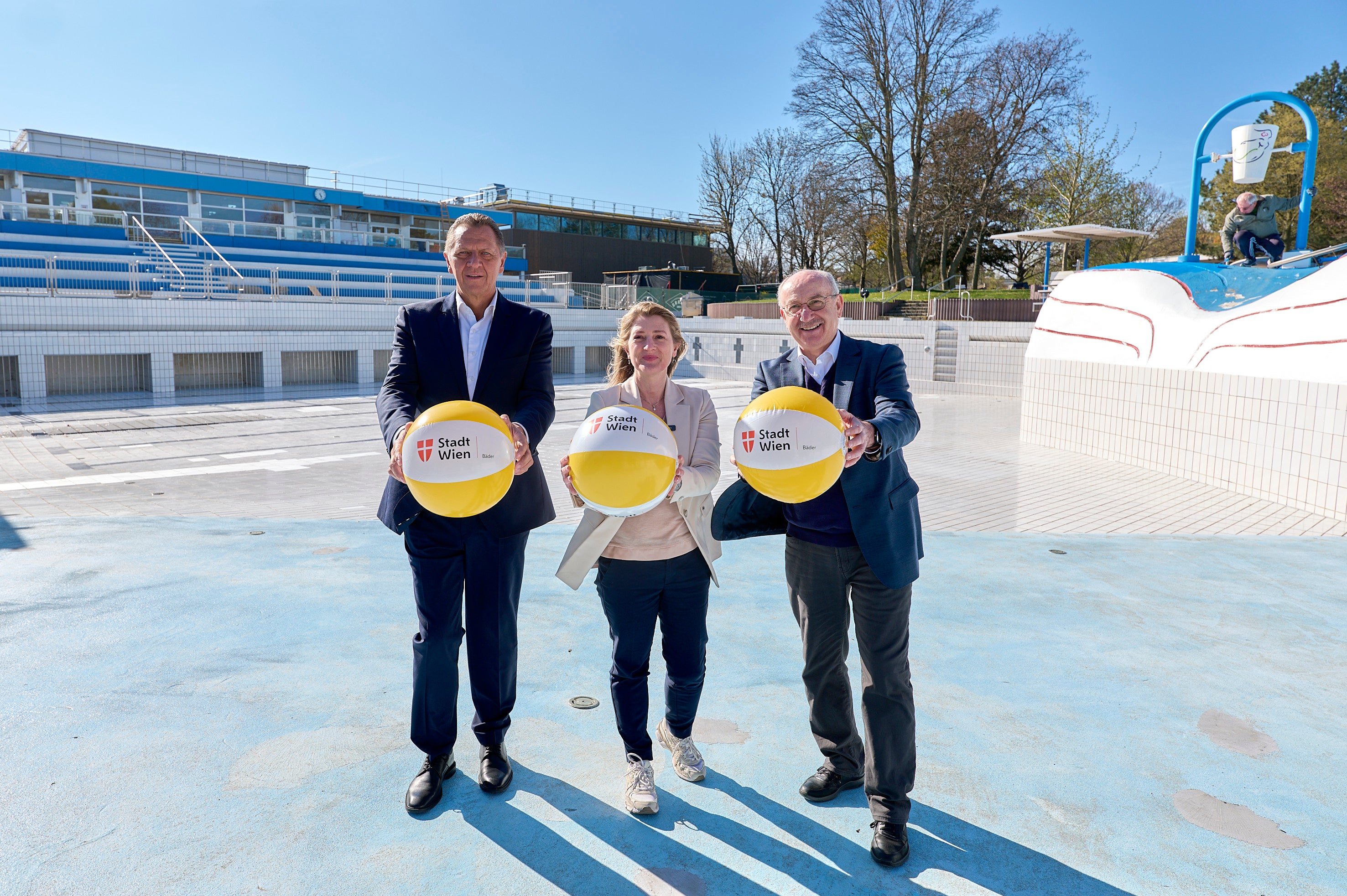 Am 2. Mai startet in Wien die Badesaison und die 30 Freibadanlagen öffnen bis 14. September ihre Pforten. Aus diesem Grund und passend zum Temperaturaufschwung lud die Vizebürgermeisterin Bettina Emmerling (NEOS) in das Simmeringer Bad, wo aktuell eine zweite Schwimmhalle errichtet wird. Die Eintrittspreise der Bäder bleiben heuer gleich mit 7,60 für Erwachsene, 2,60 Euro für Kinder und Jugendliche bezahlen 4,30 Euro. Daneben gibt es kostenlose Kinder-Schwimmkurse und Kulturangebote.