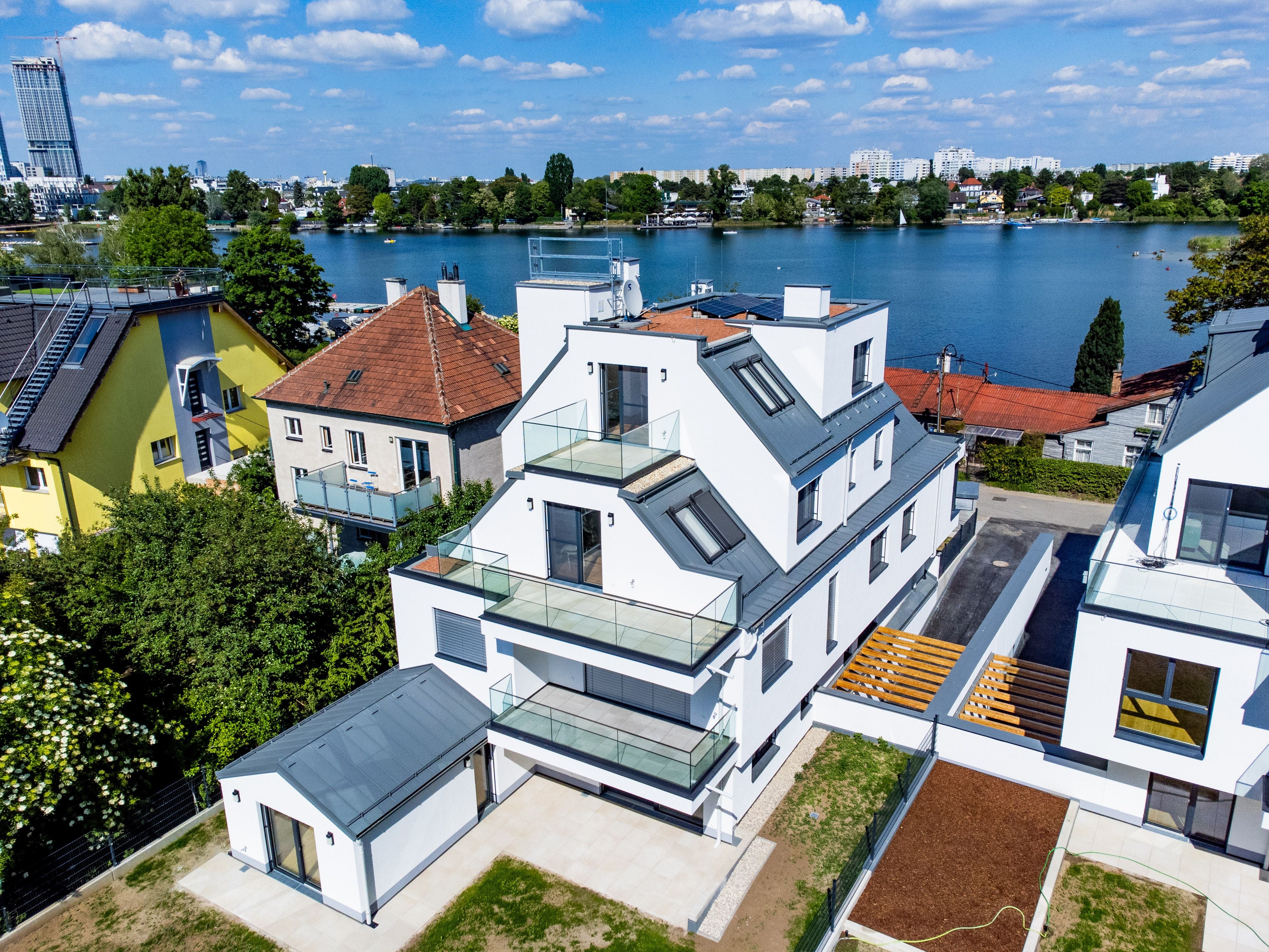 Wer höher wohnt, genießt den unvergleichlichen Blick auf die Alte Donau. Die moderne Architektur von Glorit sorgt nicht nur für ein elegantes Erscheinungsbild, sondern auch für helle Räume, hohen Wohnkomfort und Funktionalität im Alltag. Nachhaltigkeit spielt ebenfalls eine tragende Rolle: Eine Photovoltaikanlage liefert Strom für die Allgemeinflächen, eine umweltfreundliche Wärmepumpe sorgt für Wärme, während die integrierte Deckenkühlung an heißen Tagen für angenehmes Raumklima sorgt. Komfort wird großgeschrieben: Der Zugang erfolgt bequem per Lift – in der Dachgeschosswohnung sogar direkt bis in die eigenen vier Wände.