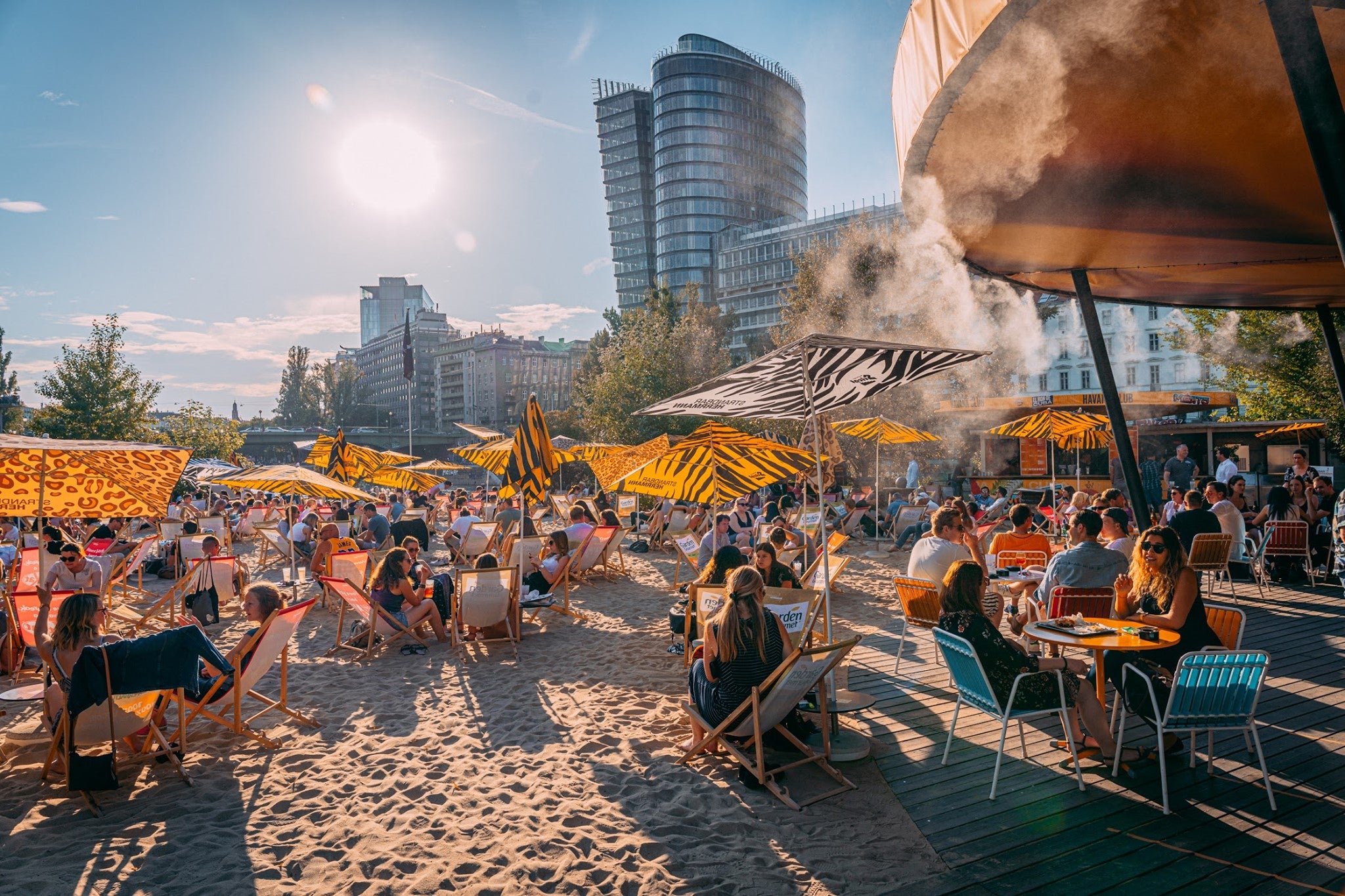 Die Veranstalter versprechen ein einzigartiges Erlebnis mit Urlaubsfeeling - mitten in Wien. Kopfhörer auf und Musik an, lautet das Motto - um stimmungsvoll in den Sonnenuntergang zu tanzen.