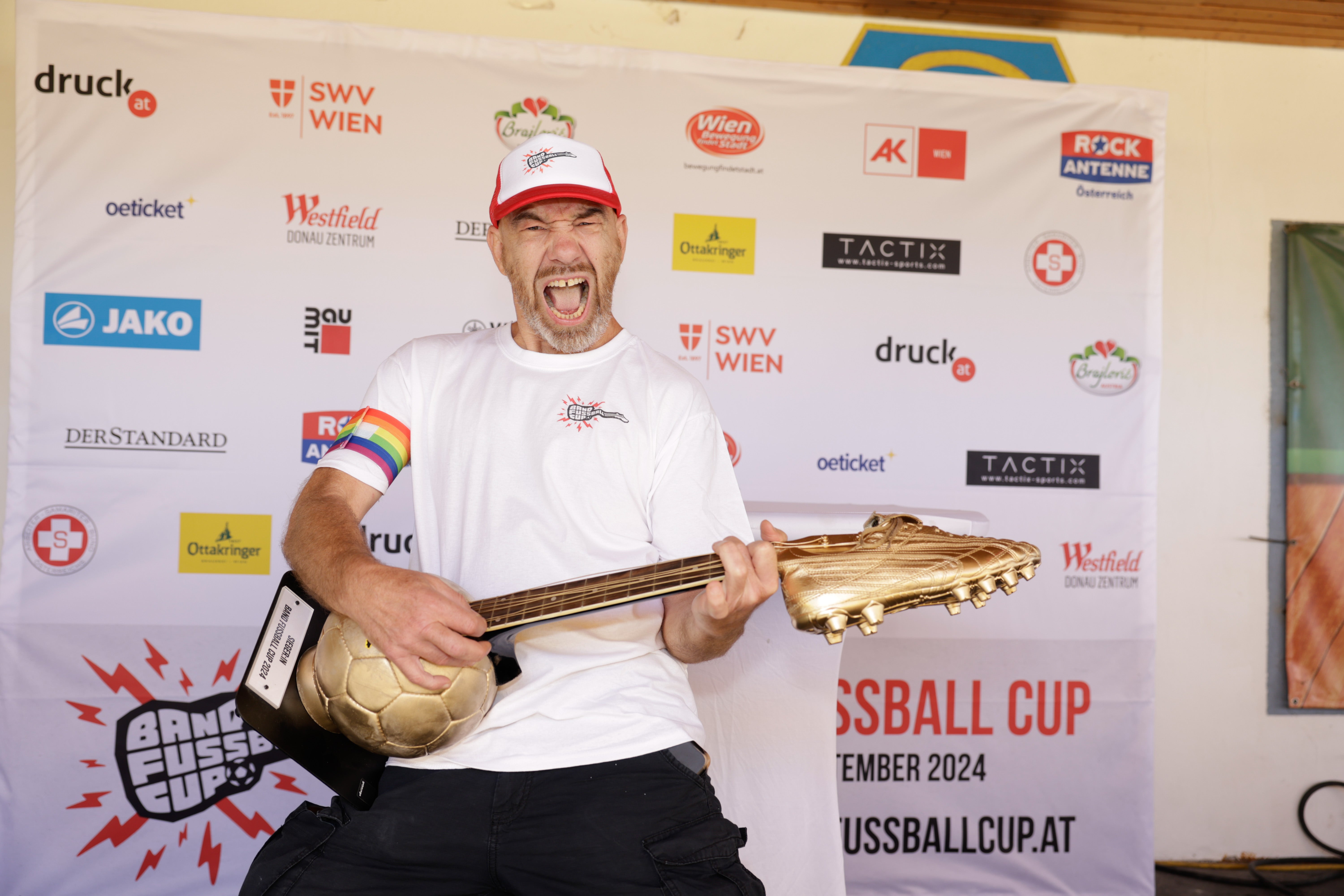 Roman Gregory, Initiator Band Fußball Cup: "Beim BFC geht’s immer um mehr als Tore und Töne – wir zeigen, dass man mit einem Kickerl, einer Gitarre und einer vollen Bierkiste gemeinsam viel bewegen kann. Und wenn am Ende ein bisschen Hoffnung und Hilfe übrigbleibt, dann haben wir schon gewonnen."