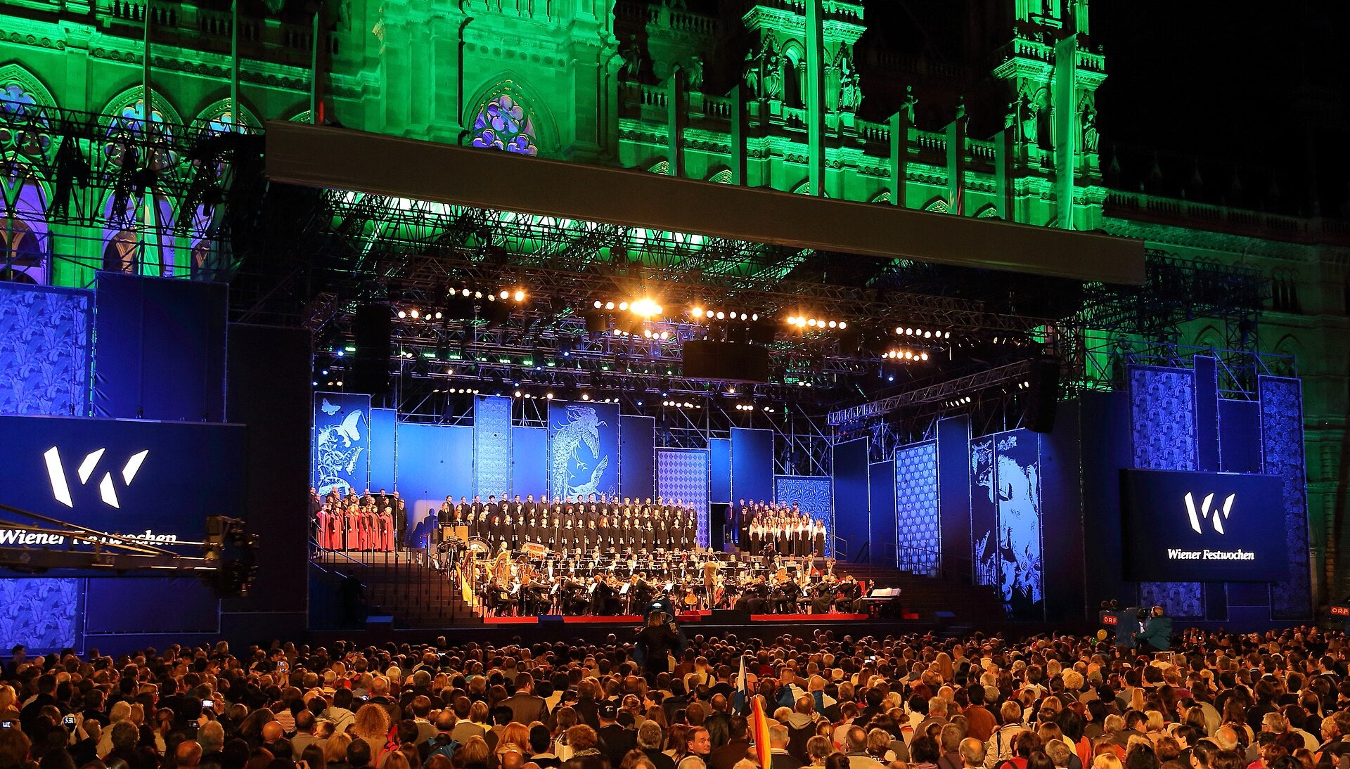 Die Veranstaltung, die auf ORF 2 und 3sat live übertragen wird, beginnt um 21.20 Uhr mit einem Trompeter am Burgtheater, auf der Bühne vor dem Rathaus wird anschließend ein musikalischer Reigen von Punk bis Klassik geboten. Mit dabei sind u.a. noch Sodl, Faber, der Caravan of Love, der Mozartchor, der Nino aus Wien, Fuzzmann und der kongolesische Countertenor Serge Kakudji. Die Künstlerinnen und Künstler musizieren teilweise auch miteinander. Dazwischen gibt es "Liebesbotschaften" von u.a. Conchita Wurst und Rau.