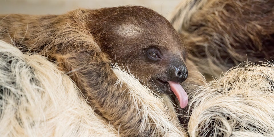 Das Jungtier liegt auf seiner Mutter wie in einer Hängematte und wird von ihr herumgetragen. Kurze Strecken hantelt es sich mit Hilfe der gebogenen Krallen schon selbst am Seil entlang. "Zweifingerfaultiere sind in den Regenwäldern Südamerikas heimisch. So faul wie ihr Ruf sind unsere Faultiere nicht. Für 'Alberta' und 'Einstein' ist 'Pauline' immerhin bereits das zehnte Jungtier", berichtete der Zoo-Chef.