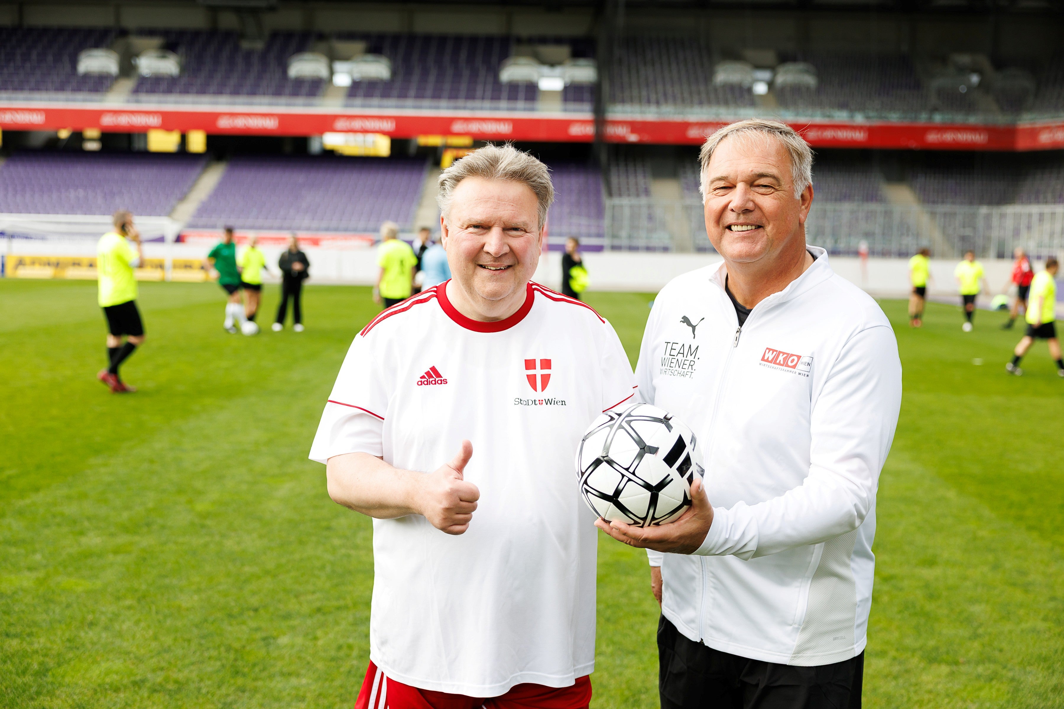 Auch dieses Jahr trafen sich Bürgermeister Michael Ludwig (SPÖ) und Wirtschaftskammer Wien-Präsident Walter Ruck auf dem Rasen. Gemeinsam mit zahlreicher Prominenz aus Politik, Wirtschaft, Medien sowie Sport und Kultur wurden 20.000 Euro für den guten Zweck erlöst.