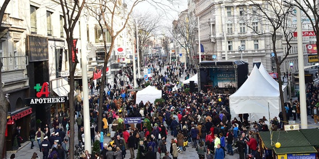 Am ersten Einkaufssamstag wurde die umgebaute und neu gepflasterte Mariahilfer Straße erstmals richtig zur Fußgängerzone. Polizisten und rot-weiße Absperrungen sorgten dafür, dass sich Auto- und Radfahrer auch nicht in die sonst eingehaltenen Begegnungszonen verirrten. An allen vier Advent-Einkaufssamstagen sowie am 8. Dezember werden Autos und Räder von dem Shopping-Boulevard verbannt.