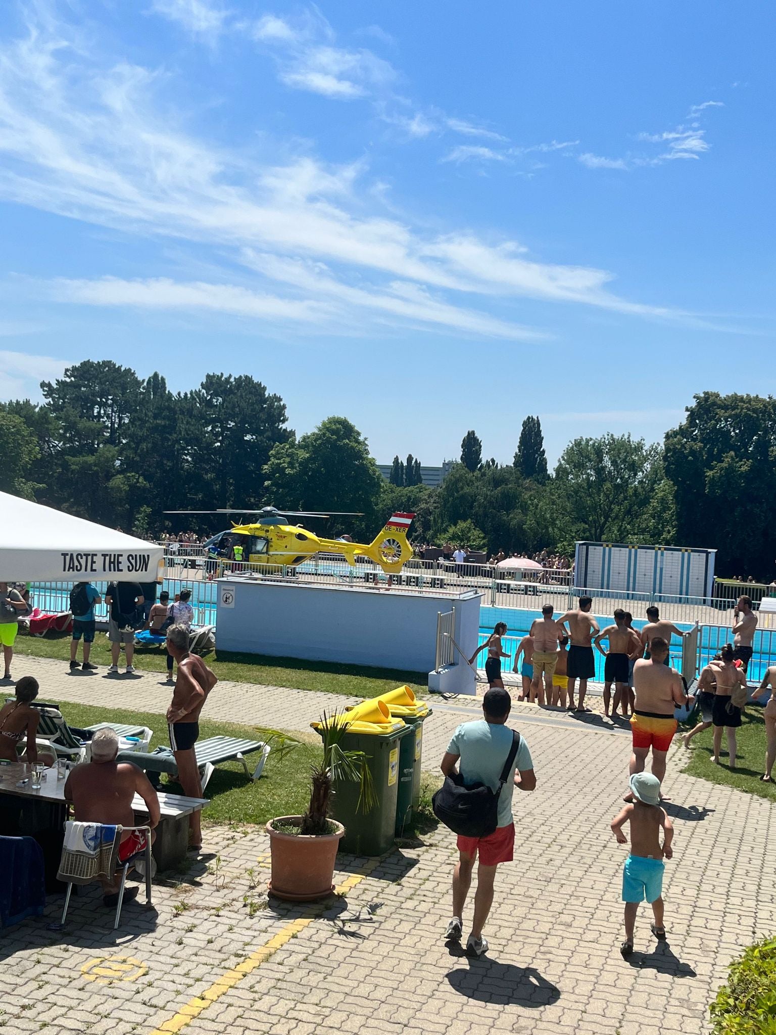 Ersthelfer bargen ihn und führten erfolgreich Reanimationsmaßnahmen durch, berichtet ein Sprecher der Wiener Berufsrettung. Deren Profis versetzten den Senior in einen künstlichen Tiefschlaf und brachten ihn mit einem Notarzthubschrauber in ein Krankenhaus.