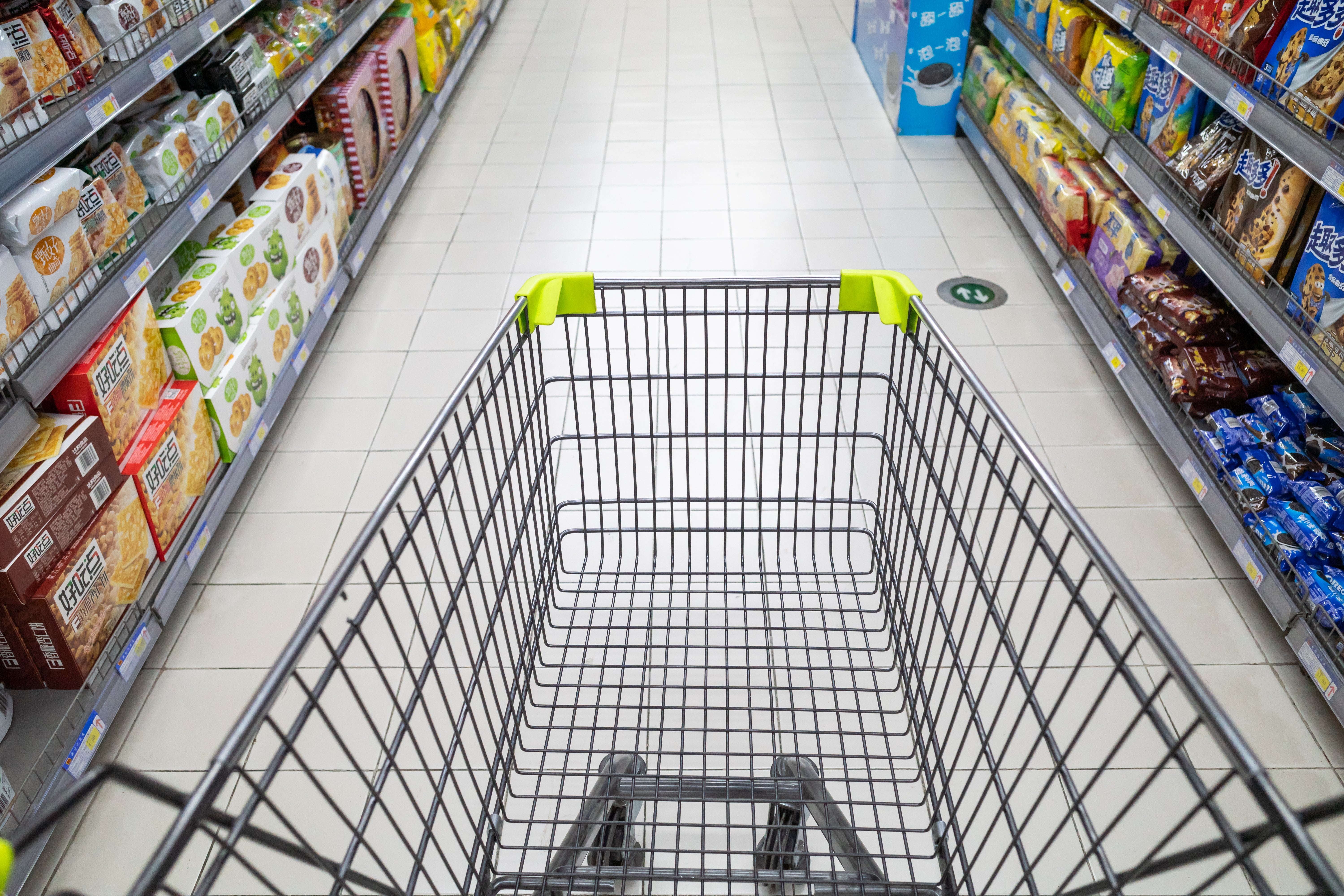 Tatwaffe: Griff von Einkaufswagerl.