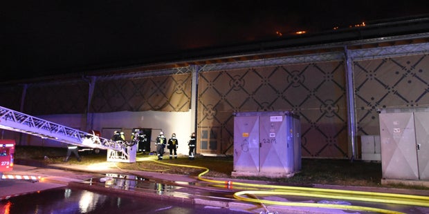 Ausgebrochen war das Feuer "bei einem der Eingänge zur Halle im nordöstlichen Teil", sagte Feuerwehrsprecher Lukas Schauer. Die Feuerwehr bekämpfte die Flammen mit mehreren Löschleitungen von innen unter Atemschutz und von außen mit Wasserwerfern, ebenso über die Drehleiter und eine Teleskopmastbühne. Mit Spezialsägen mussten die Feuerwehrleute das Dach aufschneiden. Zwei Großtanklöschfahrzeuge wurden eingesetzt. Zahlreiche Glutnester in der Dachkonstruktion konnten erst nach und nach gelöscht werden, diese Arbeiten dauerten bis in den Vormittag.