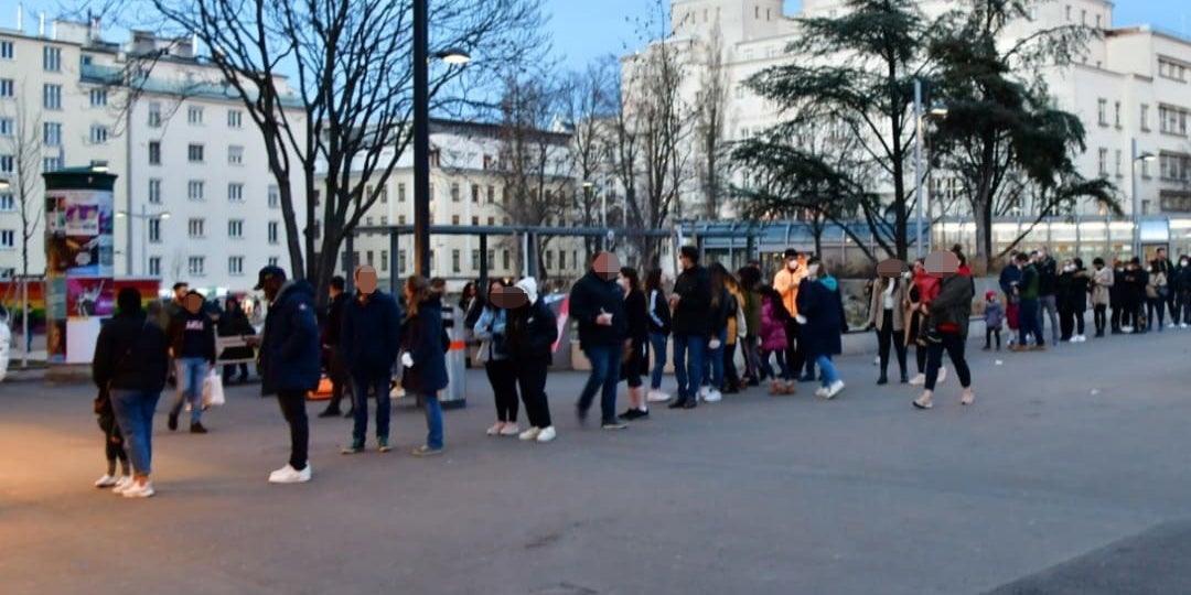 Fast Hundert Personen standen teilweise in der Schlange vor der Filiale. Dabei standen die Eis-Kunden oft dicht an dicht und nicht alle hatten eine Maske auf.