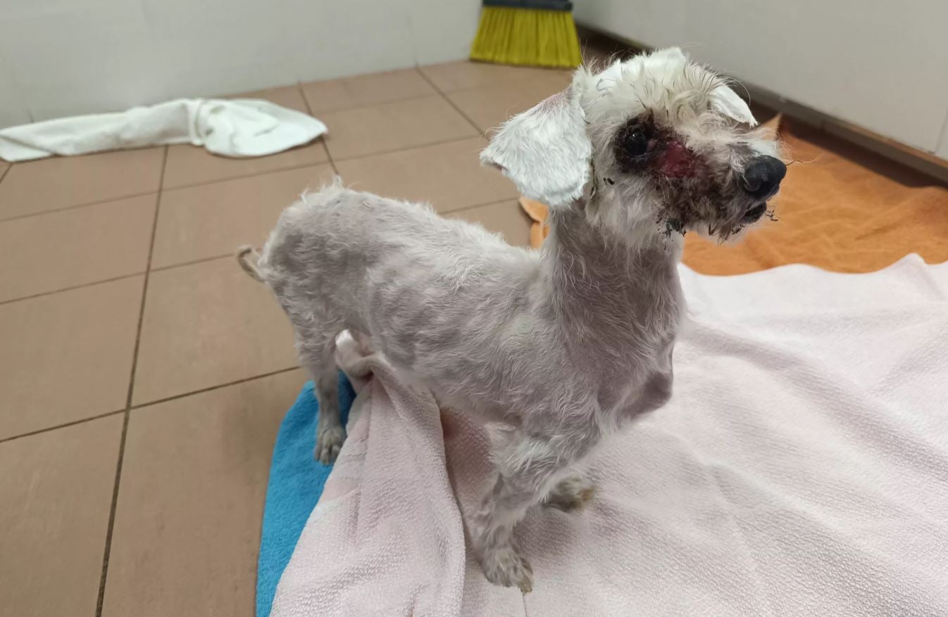 Dort angekommen, wurde der Rüde sofort versorgt und auf den Namen "Winnie" getauft. Der Hund war offenbar aus einem Foltergefängnis der Tierhaltung entkommen: In seiner rechten Gesichtshälfte klaffte eine verkrustete, verschmutzte Wunde, die sich bis zur Nase zog – offenbar über einen langen Zeitraum unbehandelt. Beide Augen waren entzündet, das rechte so schwer, dass sich bereits ein sogenanntes Cherry Eye entwickelt hatte. Zudem hatte der kleine Hund keinen einzigen Zahn mehr im Maul. Beim Scheren kam ein abgemagerter, geschwächter Körper zum Vorschein – gezeichnet von Schmerz, Vernachlässigung und Leid.