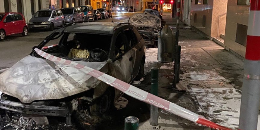Die sieben hintereinander parkenden Fahrzeuge gerieten aus "noch unbekannter Ursache" in Brand. Die Brandgruppe der Polizei sowie der Verfassungsschutz (LVT) führen die Ermittlung.