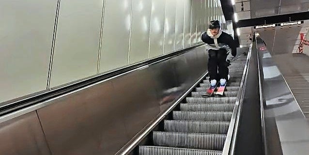 - Freeride-Star rast auf Skiern durch Wiener U-Bahn
