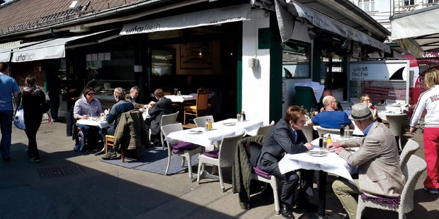 In einer Naschmarkt-Gasse graben die Bagger hinter den Baustellen-Absperrungen, eine Standl-Zeile weiter genießen Marktbesucher an den Tischen die Frühlingssonne. „Der Betrieb läuft bis Juni trotz Baustelle normal weiter“, sagt Erkan Umar (Foto) von Umar Fisch. „Mitte Juni erreicht uns dann die Baustelle. Die Pause nutzen wir, um das Restaurant umzubauen. Wenn dann die andere Gasse umgebaut wird, ist die Fischhandlung dran.“ Während des Umbaus gibt’s den Fisch im Restaurant. Auch andere Standler verlangt die Baustelle Einfallsreichtum ab. Wer nicht pausiert und umbaut, verlegt den Eingang.