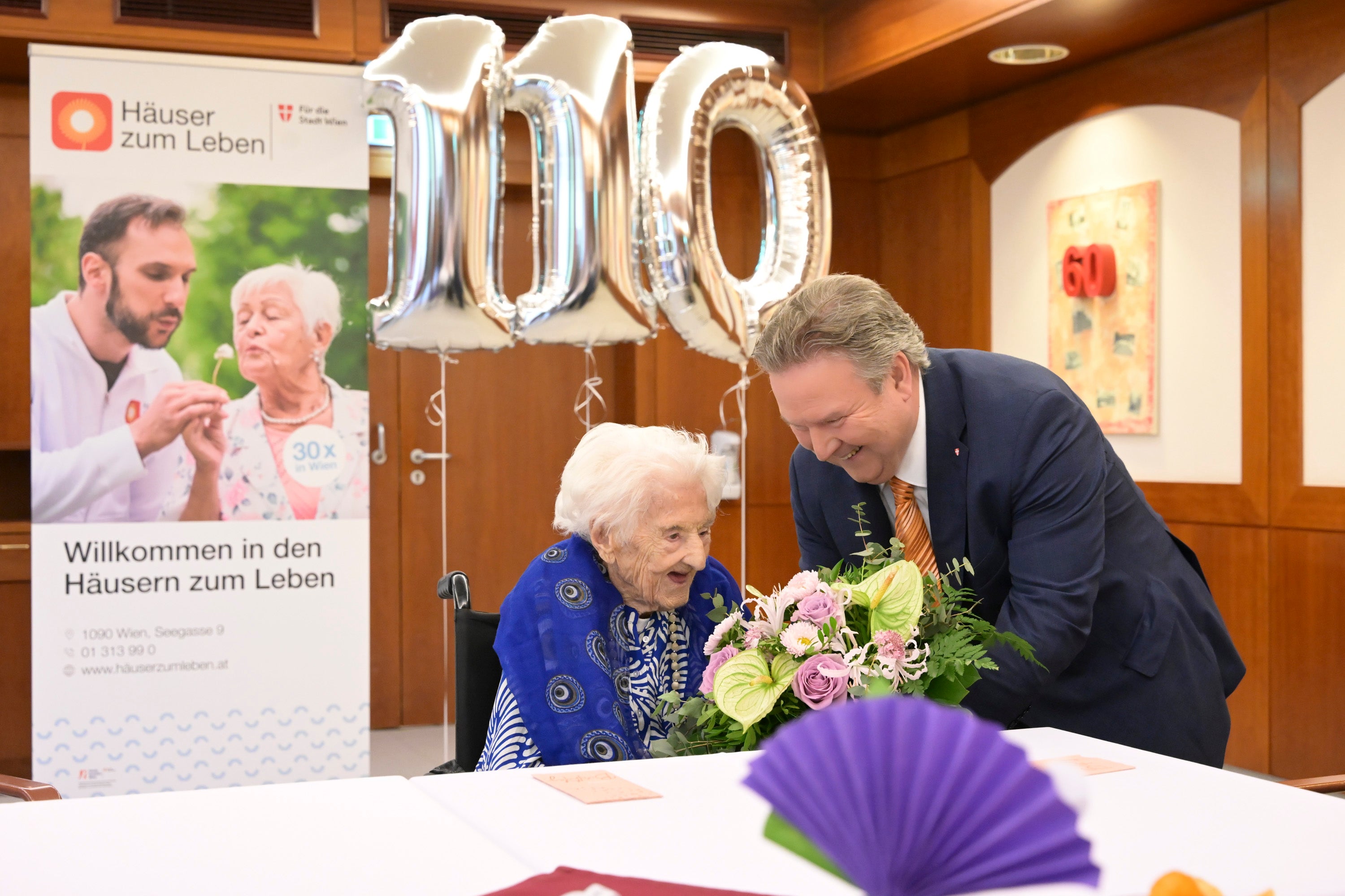 Emma Wenda feierte am 7. Juli im Haus Laaerberg ihren 110. Geburtstag - mit Ehrengast Bürgermeister Michael Ludwig.
