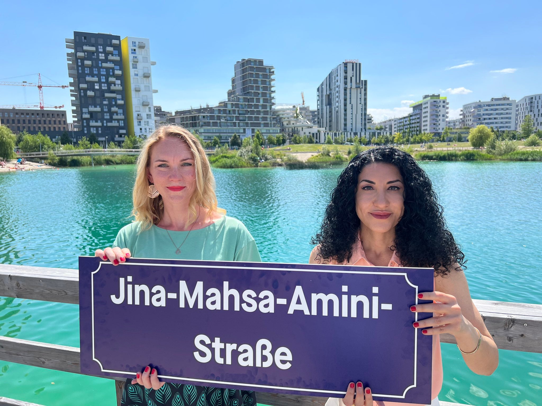 Bereits 2023 wurde Jina Mahsa Amini im Westen der Seestadt der Straßenzug zwischen Sonnenallee und Zaha-Hadid-Platz gewidmet. Die nach ihr benannte Allee steht für die Solidarität mit allen Iraner* innen, die sich für Freiheit und Demokratie einsetzen.