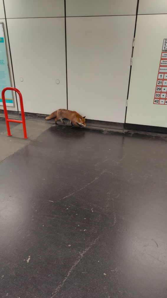 Nicht nur Menschen, sondern auch Tiere bewegen sich offensichtlich mit den öffentlichen Verkehrsmitteln in Wien fort. Ein Fuchs machte die U-Bahn-Station Taubstummengasse unsicher.