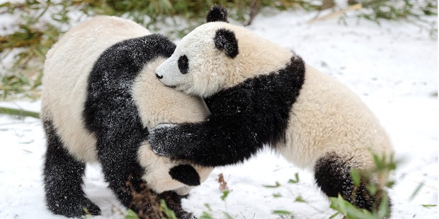 Wer die Großen Pandas vor allem mit Schlafen und Bambusfressen verbindet, sollte sich die Bären jetzt ansehen. Schratter: "Nicht nur 'Fu Bao' genießt die Schneelandschaft in vollen Zügen. Auch seine Eltern 'Yang Yang' und 'Long Hui' sind richtig ausgelassen. 'Yang Yang' wälzt sich mit dem Kleinen im Schnee und tollt mit ihm herum."