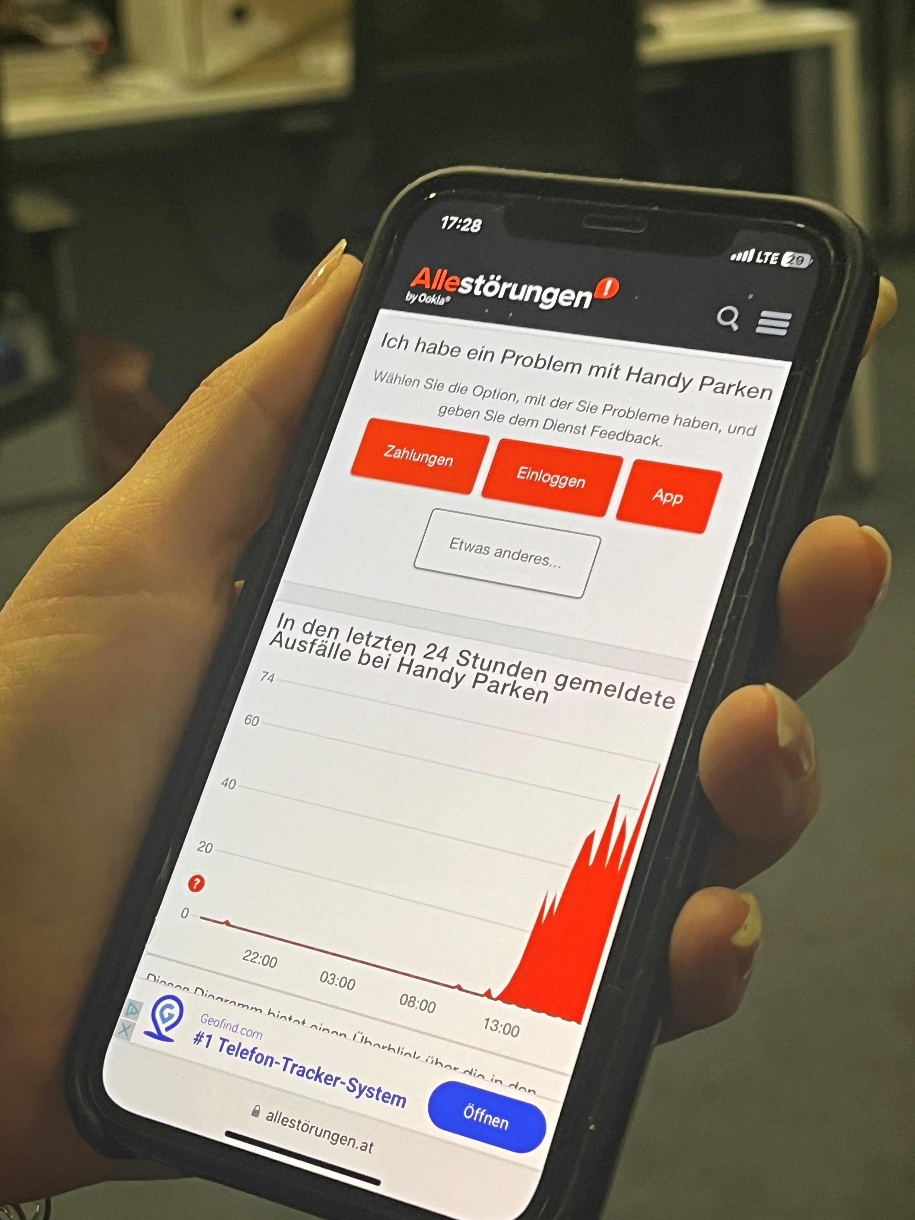 Wer in Wien am Nachmittag eine Parkberechtigung über die Handy-Parken-App wollte, hatte schlechte Karten: Ab 13 Uhr ging nichts mehr und das blieb so. Ohne konventionelle Parkscheine aus Papier im Handschuhfach ist man aufgeschmissen, denn gestraft wird trotzdem.