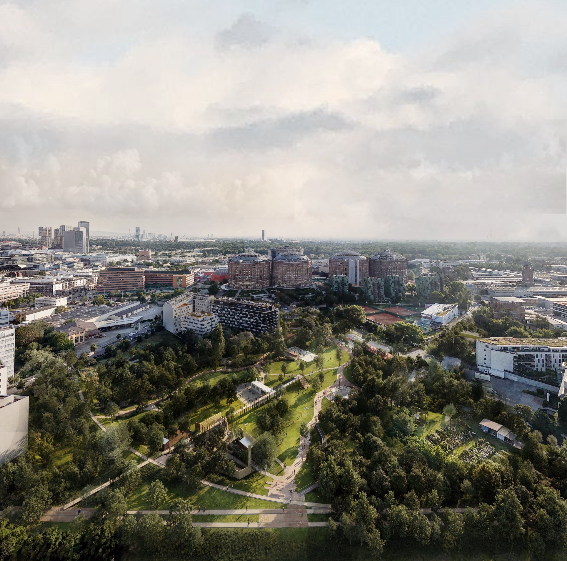 Das Gestaltungskonzept verspricht eine 51.000 Quadratmeter große Grünoase für einen großzügigen Freiraum im Stadtteil Bricolage City in Simmering.